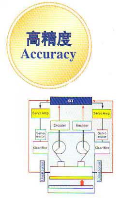 采用左右独立驱动/控制的方式,自动修正左右偏移。