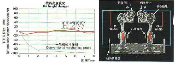 线性传感器测量下死高度,并自动进行修正。